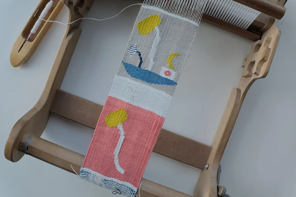 I’m managing two days in the studio at the moment alongside teaching, and parenting. But since I’ve had children I have shifted to cultivating a daily practice - even if it’s just 10 minutes through either daily weaving or drawing in a sketchbook. I’m just publishing two new zines that collects together a year of daily sketchbook drawing in each, one made during 2024 documenting my attention being drawn towards the boticanical world Something Like Static, and this year At the Blue Table, which documents flowers brought back from my allotment and observed through drawing sitting around the kitchen table with my kids. I recently memorised the poem Days by Philip Larkin, which I think captures the intention of what daily practice can do to help me navigate this stage of my life. Life is very repetitive when you have kids at school, but at the same time it is precious and fleeting when you take into account what life can throw at us. Days come, over and over, the growth and change is sometimes unperceivable, but it’s there, emerging. So I’m trying to find something in the tempo of the everyday, my favourite part is the little notes and drawings the kids leave, the ephemera which captures a part of that magic space of imagination we can try to find in the everyday.